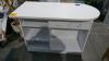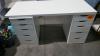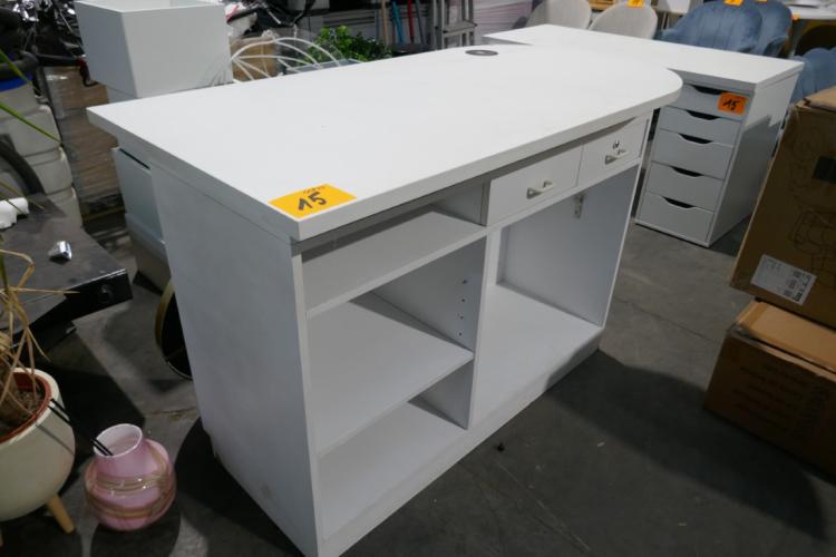 Houten receptiebalie witte kleur + bureautafel met 2 ladenblokken witte kleur
