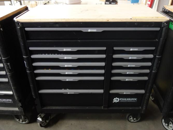 Gevuld met divers handgereedschap, vv. 13 lades, (slot verwijderd)
