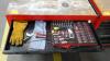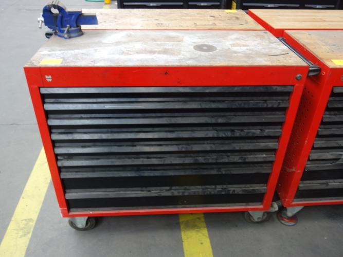 Gevuld met divers handgereedschap, vv. 9 lades en bankschroef, (slot verwijderd)