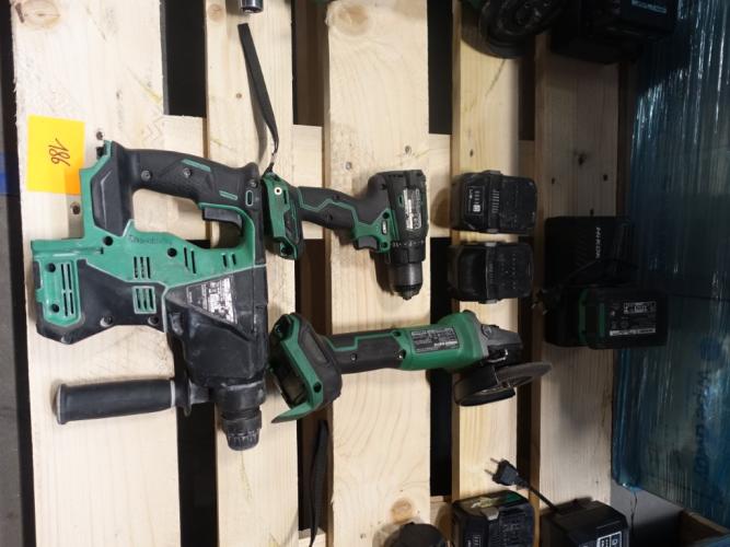 haakse slijper, klopboormachine en boormachine, vv 3x accu en lader