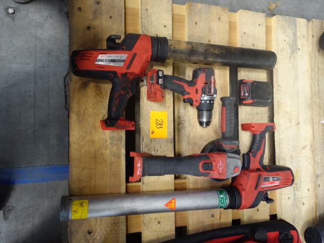 2x kitspuit, boormachine en haakse slijper