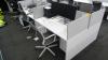 6000x1500x720 , vv 8 stoelen , 4 schermen ,7 ladekasten met inhoud , exl laptoptassen