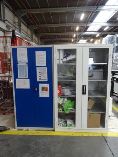 2x Metalen kast + 3x tafel + 6x ladekastje