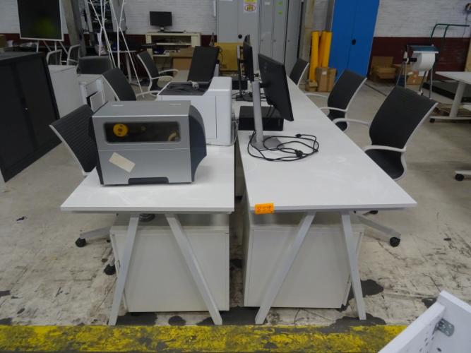Oa. 6x tafel, 6x bureaustoel, labelprinter, computerconfiguratie, ... (met inhoud)