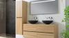 Badkamermeubel 130 cm - Licht hout decor + zwarte waskommen - Incl. muurkranen