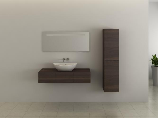 Model:1-persoons badkamermeubel 120 cm - donker hout decor met zijkast en witte waskom