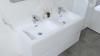 Badkamermeubel 120 cm - Hoogglans wit + witte dubbele wasbak - Incl. kranen