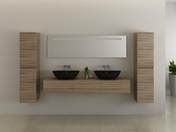 2-persoons badkamermeubel 180 cm licht hout decor - Incl. kranen