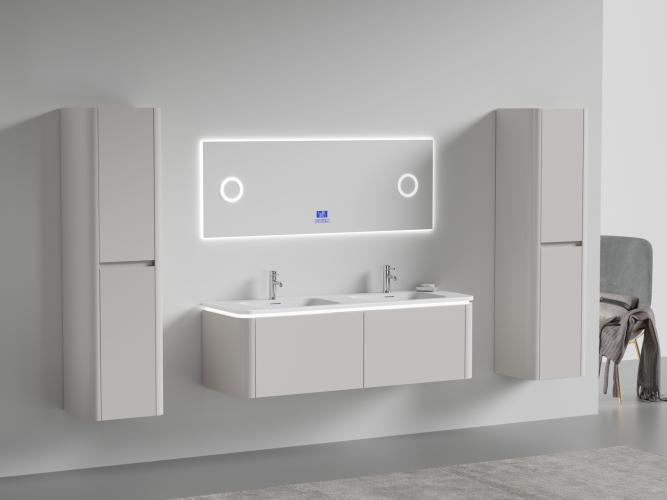 Badkamermeubel 2 persoons 140 cm - Taupe - 2 zijkasten, 1 LED spiegel