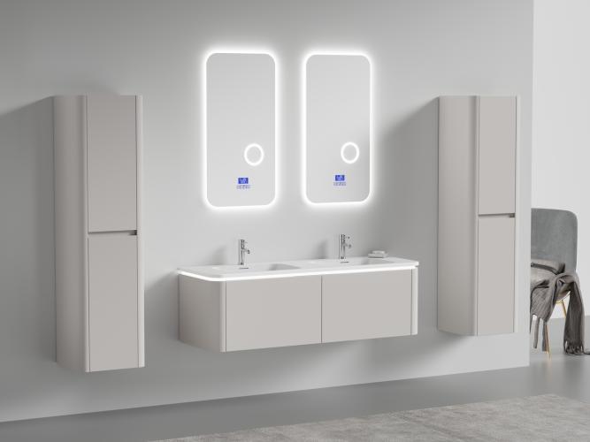 Badkamermeubel 2 persoons 140 cm - Taupe - 2 zijkasten, 2 ovale spiegels
