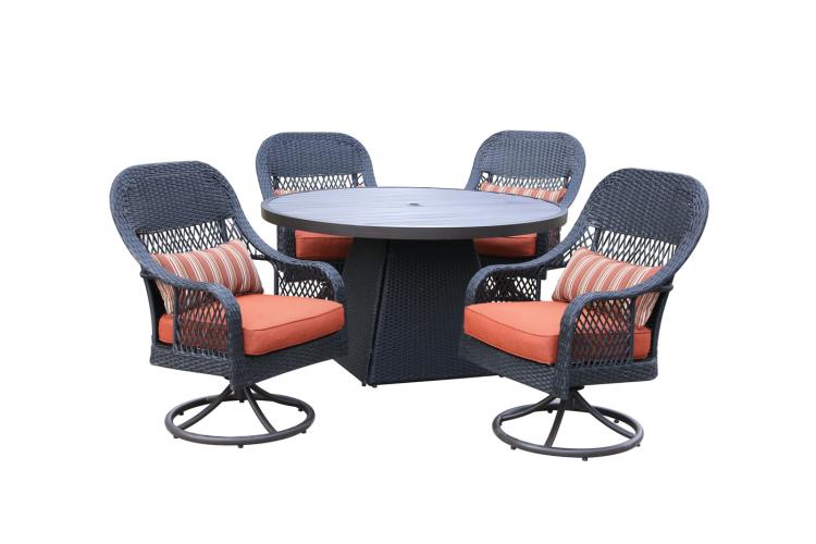 Diningset - 5-delig rond- Antraciet wicker + oranje kussens