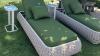 Ligbeddenset 2-delig brown wicker / olive green kussens