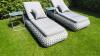 Ligbeddenset 2-delig dark grey wicker / light grey kussens