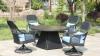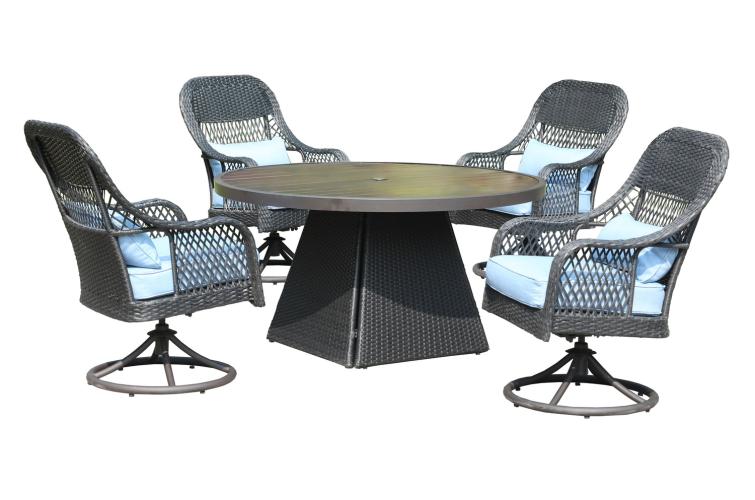 Diningset - 5-delig rond- Antraciet wicker + blauwe kussens