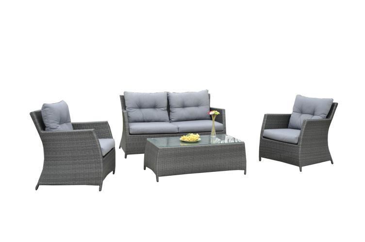 Loungeset 4-delig - Antraciet wicker + grijze kussens - Weerbestendig vlechtwerk
