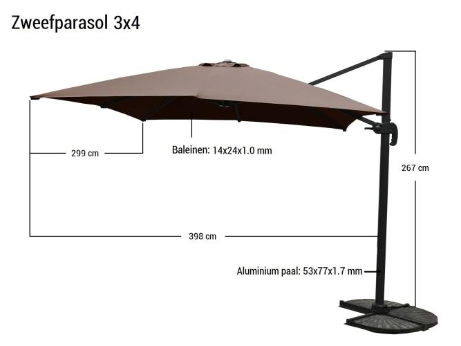 Voorzien van: Groot parasoldoek met een afmeting van 300x400 cm. - Sterk en stevig frame gemaakt van aluminium.