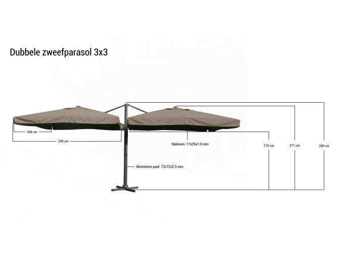 Voorzien van: Groot parasoldoek met een afmeting van 2x ø300 cm. - Sterk en stevig frame gemaakt van aluminium.