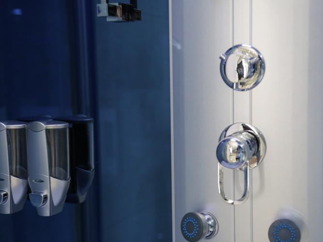 Voorzien van: Gekleurd veiligheidsglas wat zorgt voor extra veiligheid in de stoomcabine. Dankzij het veiligheidsglas hoef u zich nooit zorgen te maken over scherven op de vloer want het is stootbestendig en sterk. Mocht het toch gebeuren dat het glas barst, dan zal het uiteenvallen in onscherpe stukjes.- Schuifdeuren met een waterdichte afsluiting - Plafondverlichting - Sfeerverlichting - Handdouche - Regendouche - Handdoekenrek met planchet - Zeep en shampoodispenser - Functie voor een aangename voetmassage