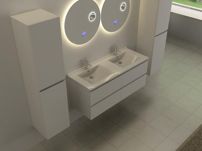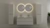 Voorzien van: Touch bediening via digitaal display – LED verlichting in 3 kleuren, dimbaar – Bluetooth & speakers – Digitale klok – Digitale temperatuurmeter – 220 volt aansluiting – Anti-fog technologie door verwarming in de spiegel – Vergrootglas (vergroot 3x) in de spiegel Ø10 cm - Kopervrije spiegel - 1,5mm explosieveilige laag aan de achterkant.