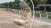 Hangstoel 80 cm breed - Hoogte 195 cm - Wit frame / mokka kussens