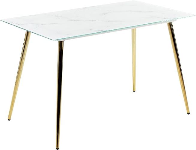 Ongebruikt, volledig, ok, Beliani Glamour eettafel gehard glas glanzend tafelblad wit gouden poten Mulga, B0C18D5HKK