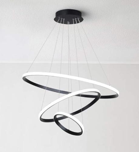Gebruikssporen, getest en werkend, volledig, ok, beschadigde verpakking, Led-hanglamp, 3 ringen, HH-20 x 40 x 60 cm, met afstandsbediening, lichtkleur traploos instelbaar, dimbaar, 120 watt, in hoogte verstelbaar, led-plafondlamp, 120 cm, hanglamp A+, B082Q1D3Q6