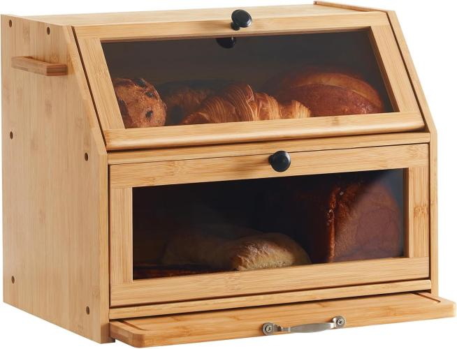 Minieme gebruikssporen, ok, YOUDENOVA Broodtrommel, bamboe, eco broodmand met snijplank, opbergdoos, keuken, broodopslag, broodcontainer, gevisualiseerd voor brood, roosterbrood, 39 x 26 x 32,5 cm (l x b x h), natuurlijk bamboe, B0C713T6MD