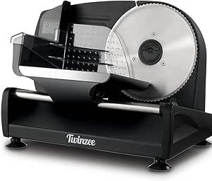 Ongebruikt, getest en werkend, volledig, ok, Twinzee Elektrische Allessnijder - Verstelbare dikte van 0 tot 15mm - Worstensnijmachine, Broodsnijmachine, Hamsnijmachine - Elektrische Groentesnijmachine - Vlees, Kaas, B087V22SFZ
