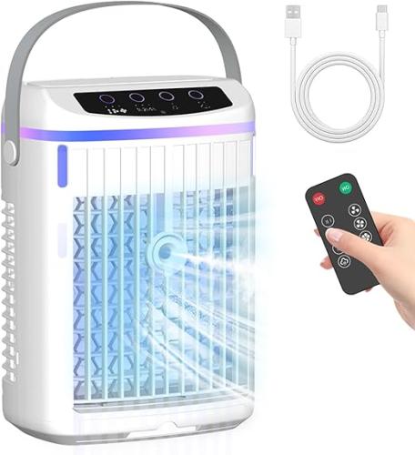 Ongebruikt, getest en werkend, ok, Draagbare luchtkoeler, koeling luchtventilator, 4 in 1 verdampingskoelers, draagbare usb ventilator, usb koelventilator met afstandsbediening LED-licht 3 snelheden Timer voor thuis, kantoor, B0F1CNLV7X