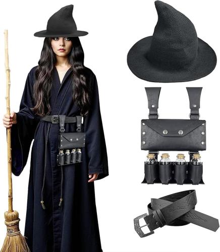 Ongeopend, in seal, HiiFeuer Middeleeuwse alchemieset van kunstleer, heksenpet met punt voor vrouwen, fantasie tovenaarsriem met toverdrankbuidel, B0DHBY72PC