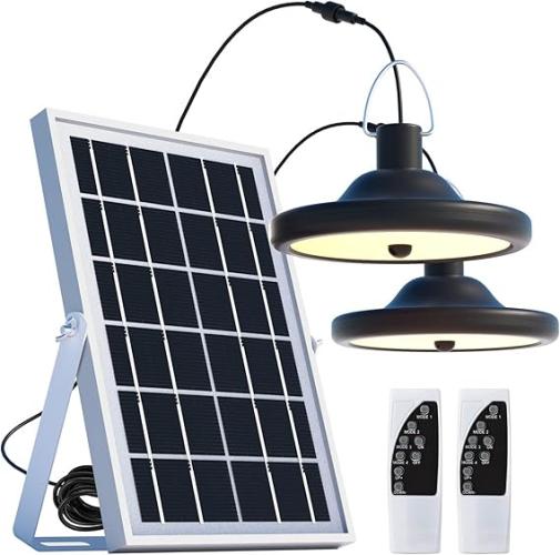 Ongebruikt, getest en werkend, volledig, ok, licht beschadigde verpakking, JACKYLED Solarlampen met afstandsbediening, IP65 waterdicht, dubbele kop, hanglamp op zonne-energie met 16,4 ft kabel, hanglamp op zonne-energie voor tuin, camping, huis, terras, balkon (warm wit), B08TBD95G6