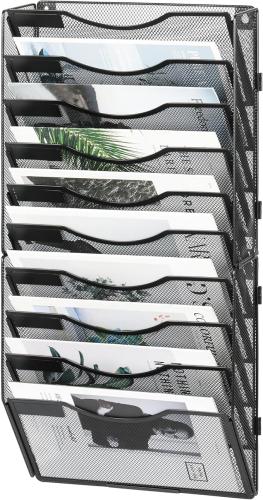 Ongeopend, Hangende opbergorganizer, wandmontage tijdschriftenrek (zwart, 10 pockets), (l x b x h): 32,5x18x68,5cm, elke sleuf hoogte: 6 cm B0D7HGX3PD