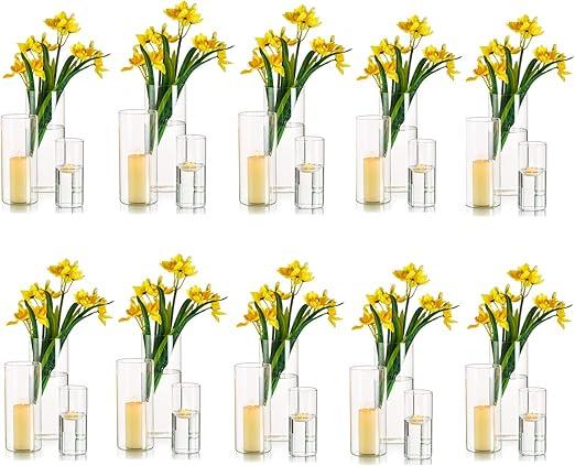 Ongebruikt, volledig, ok, Hewory Glazen bloemenvaas, 30 stuks, transparante ronde bloemenvazen voor de woonkamer, glazen bloemenvaas voor tafelpresentatie in de eetkamer, windbestendige kaarsenhouders voor bruiloft, 10 / 15 / 20 cm, B0BR5F92NT