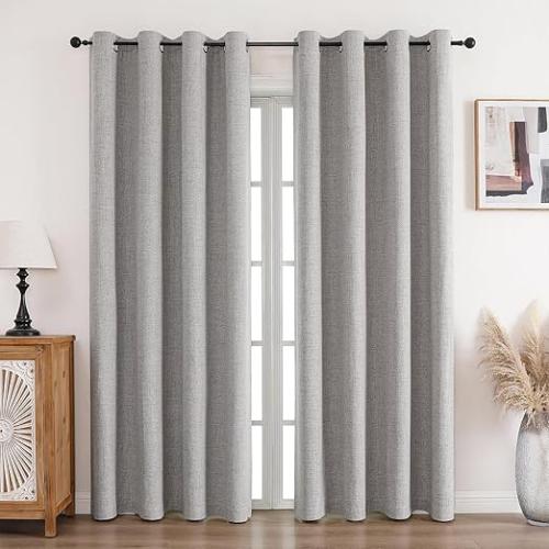 Ongebruikt, ok, CUCRAF Gordijnen, 100% ondoorzichtig, linnen, met ringen, verduisteringsgordijnen, grijs-wit, 214 x 132 cm (h x b), set van 2, thermogordijn, koudebescherming, geluidsisolatie, gordijn voor woonkamer, B0D37NMX4R