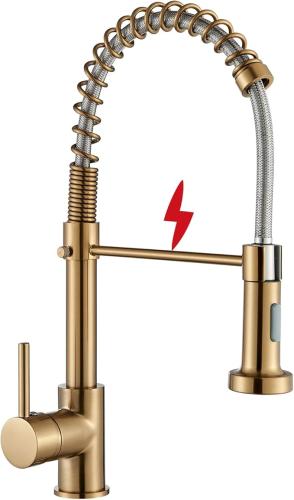 Geborsteld goudkleurige lagedruk keukenkraan