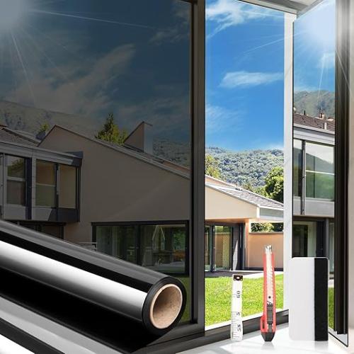 Ongebruikt, ok, licht beschadigde verpakking, Arthome Warmte Blokkerende Raamfolie Kit Anti-UV 90cmx10m, Warmte Controle Raam Stick Tint Reflecterende Geen Lijm DIY One Way Film voor thuis en op kantoor zon schittering vermindering met Tool, B0C2PYQXLZ