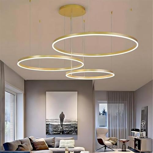 Ongebruikt, getest en werkend, volledig, ok, Wayluoung LED Metalen Kroonluchter | 3 Cirkels 60+80+100cm | 108W Ringen Plafond Hanglamp, Dimbare Afstandsbediening 3000-6000K, Acryl Schaduw Hanglamp, Woonkamer Slaapkamer Foyer Eetkamer, goud, B0CWY69T4J