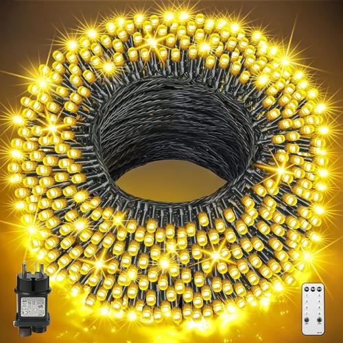 Minieme gebruikssporen, getest en werkend, ok, beschadigde verpakking, GYLEFY kerstlichtketting voor buiten, 100 m, kerstlichtketting 800 leds, met afstandsbediening, waterdichte led-lichtketting voor kerstdecoratie, warmwit, B0B68P9CGG