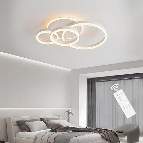Ongebruikt, getest en werkend, ok, Led-plafondlamp, 48 W, dimbaar, plafondlamp, modern, woonkamer, 61 cm, 4 ringen, ledlampen, plafondlamp, binnenverlichting, wit, B0F8BC5GX6