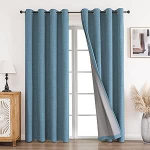 Ongebruikt, ok, CUCRAF Gordijnen, 100% ondoorzichtig, linnen, met ringen, verduisteringsgordijnen, hemelsblauw, H 214 x B 132 cm, set van 2, thermogordijn, koudebescherming, geluidsisolatie, gordijn voor woonkamer, B0D37S1G5X