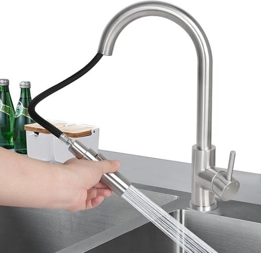 Ongeopend, Keukenkraan, hoge druk met uittrekbare handdouche, keukenkraan, wastafelkraan, 360 graden draaibaar, twee sproeifuncties, roestvrij staal, B0C73XZ8NM