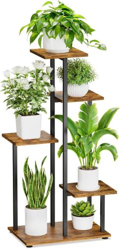 Ongeopend, in seal, iDavosic.ly Metalen plantenstandaard met 5 niveaus, plantenrek, bloemenrek, voor binnen en buiten, bloemenstandaard, voor tuin en balkon, zwart, B0D9V72B7G