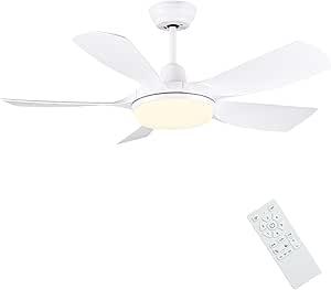 Ongebruikt, getest en werkend, volledig, ok, Newday Plafondventilator met licht en afstandsbediening, 106 cm, stille plafondventilator met dimverlichting, DC-motor, 5 vleugels, 6 snelheden, geheugenfunctie, wit, B0CPLS8XXY