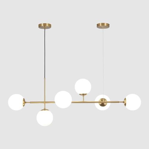 Ongebruikt, getest en werkend, volledig, ok, KCO Lighting Vintage glazen kroonluchter met 6 lampen voor woonkamer, moderne lineaire kroonluchter in witte bolvorm, gouden messing hanglamp uit het midden van de eeuw voor keuken ,B08YNTMLDQ