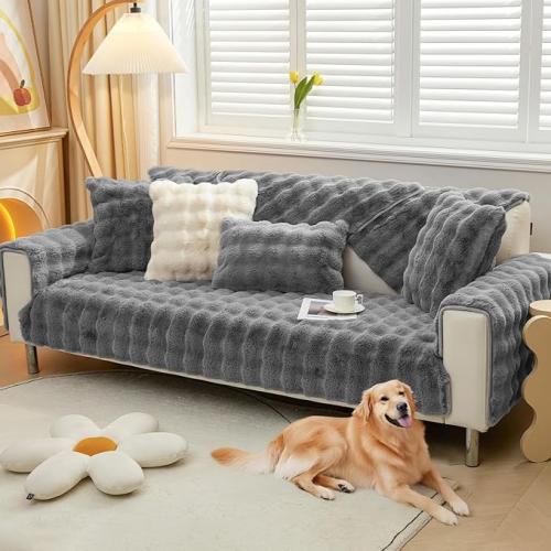 Ongeopend, Royhom Zachte pluche bankhoes - nieuwe slipvaste bankhoezen, konijnenbont bankhoezen, donzige bankhoes, L-vormige meubelbeschermer voor de woonkamer (Donkergrijs 110 x 240 cm) B0D8VYZ4CV