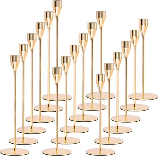 Ongebruikt, ok, compleet, 18 stuks gouden kegelvormige kaarsenhouders, 1,8 cm dik, hoge metalen kaarsenhouders voor bruiloften, huisdecoratie, diner bij kaarslicht (goud), B0C3XJ12GM