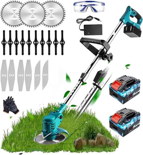 Gebruikssporen, getest en werkend, ok, Koonlong Accu grastrimmer met accu en lader, accu bosmaaier, accu grasmaaier voor Makita, elektrische grastrimmer met 2 accu's 4,0 Ah, elektrische bosmaaier voor tuin, gazon en terras, B0FC1TGPYH