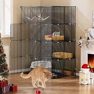 Ongebruikt, ok, YITAHOME Grote dierenkooi voor binnen, 4 niveaus, metaaldraad met 3 ladders, Catio met hangmat, dierenkooi voor 1 tot 3 katten, konijn, zwart, 107 x 72 x 142 cm B0CL9X4M6H