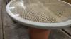 DIA 100CM, Hoogte 76cm -Mortex poot Terracotta - Houten tafelblad Riet met glastop