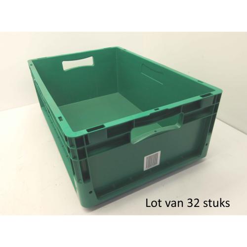 Afmetingen: 600x400x220mm - 38L - Materiaal: PP recycle - kleur: groen - Gewicht: 1,77kg - Goedgekeurd voor gebruik voedingsmiddelen - Staat. Nieuw